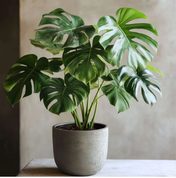 Monstera is not only visually striking but also helps improve indoor air quality and creates a calming, natural atmosphere. Regular pruning of older leaves promotes new growth and maintains its elegant shape.